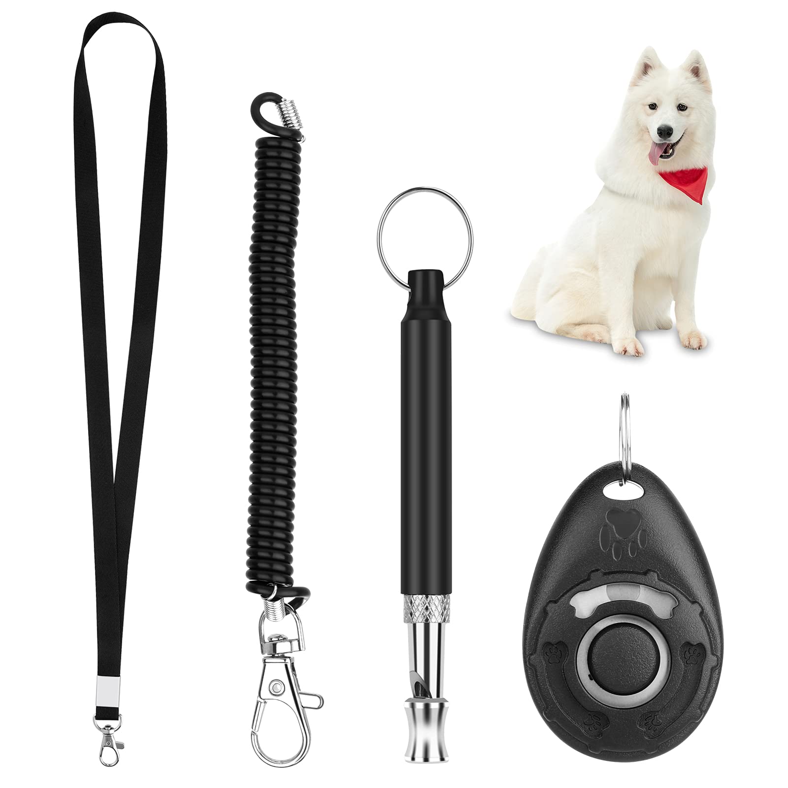 4 Pcs/Set Dog Training Whistle and Clicker, Adjustable Frequency Ultrasonic Dog Whistle with Lanyard, Professional Dog Clicker, Pet Training Kit, Stop Barking, Ideal for Recall Dogs Pet Puppy Training