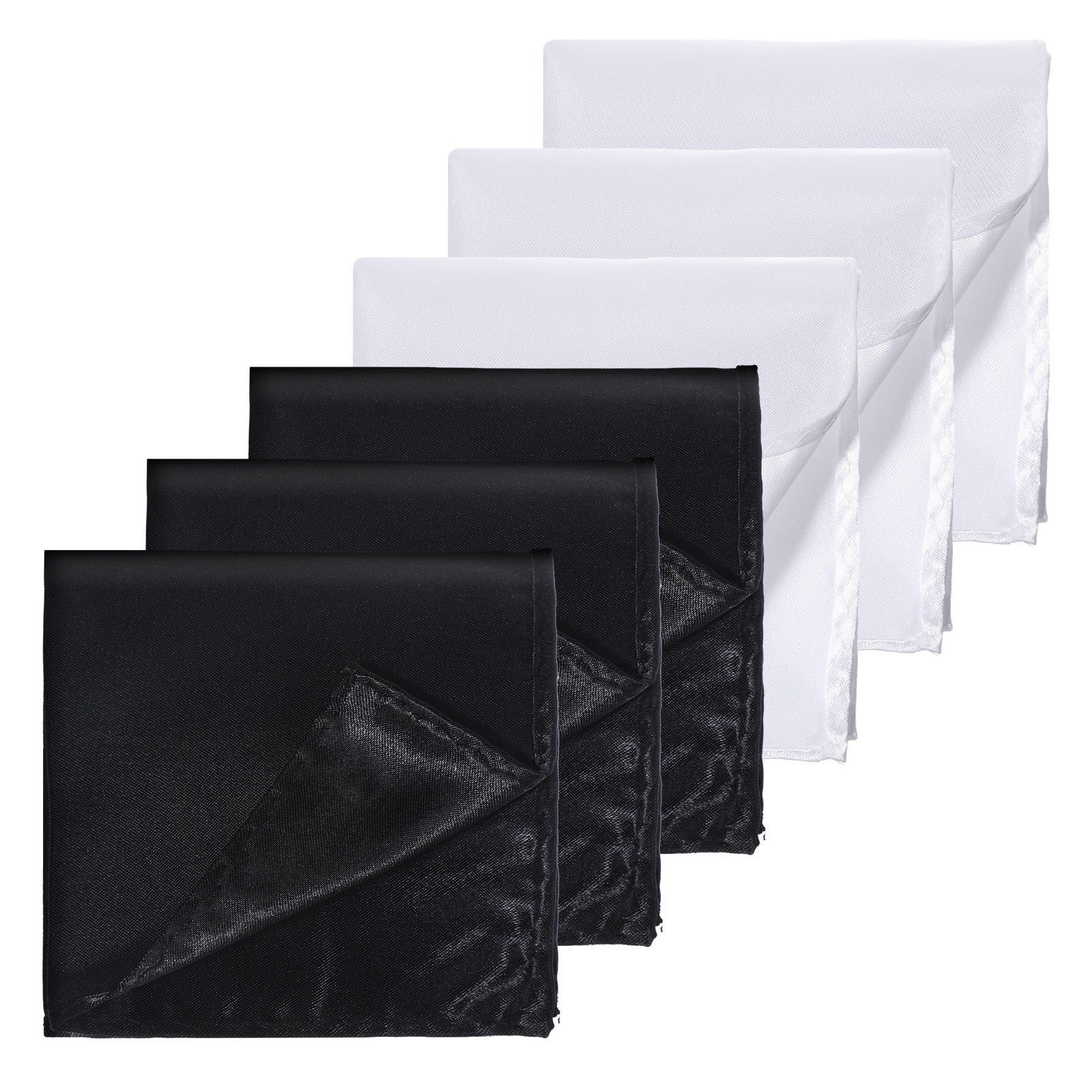 6Pcs Satin Pocket Square for Men, Suit Handkerchief Solid Handkerchief for Men Business Wedding Christmas Gifts(Black+White)