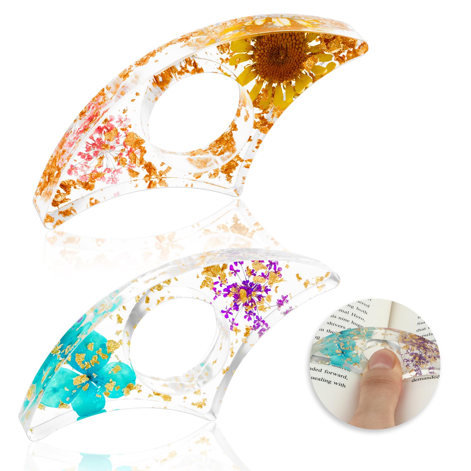 Amabro 2 PCS Book Page Holder for Reading, Dried Flower Book Holder Thumb Book Page Holder Book Lover Gifts Resin Bookmark Thumb Bookmarks Book Accessories for Reading Lovers (Color B)