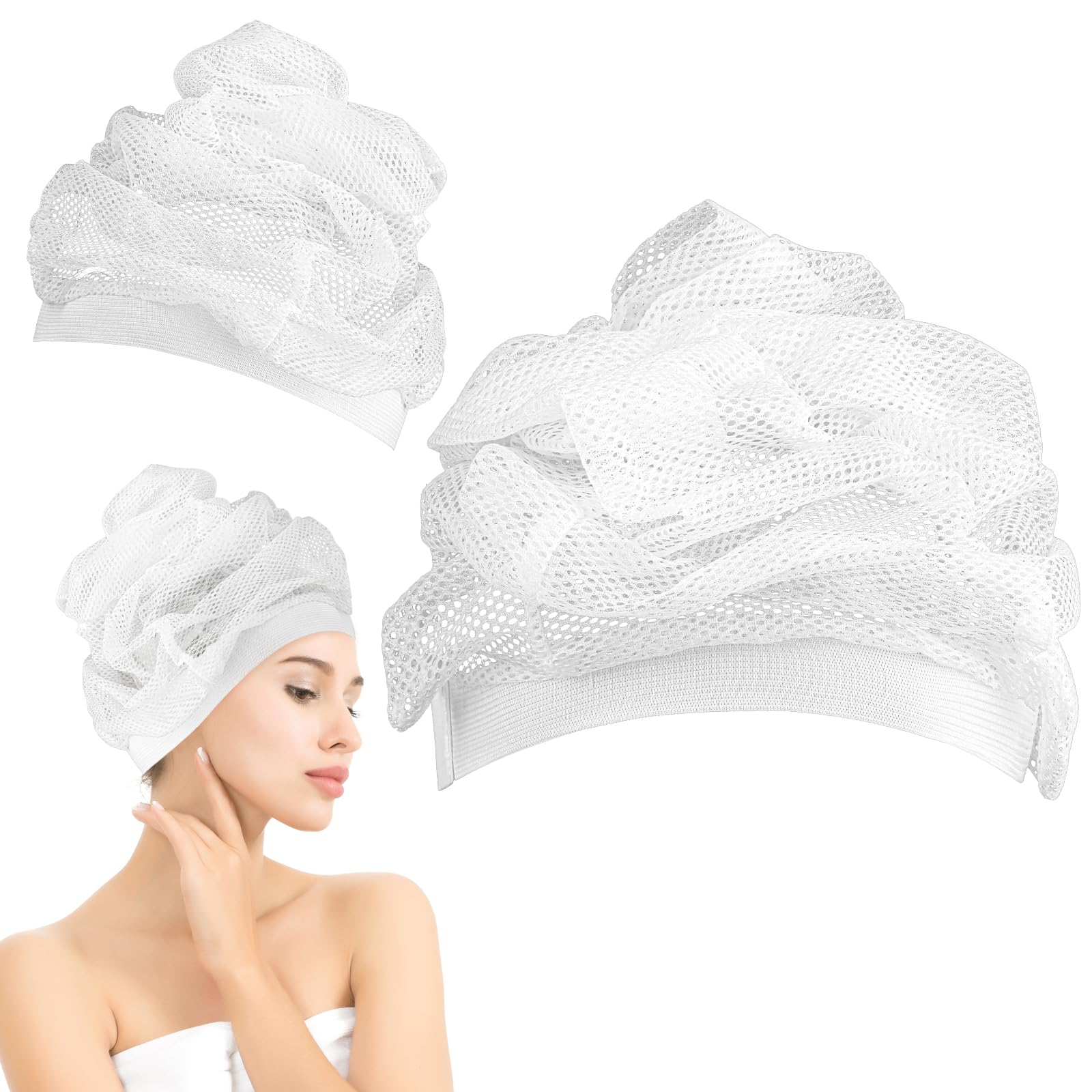Amabro 2 PCS Net Plopping Cap, 13.4-17.3''Adjustable Hair Plopping Cap With Drawstring Reusable Curly Hair Net Sleep Bonnet Shower Hat for Long, Straight, Curly Hair