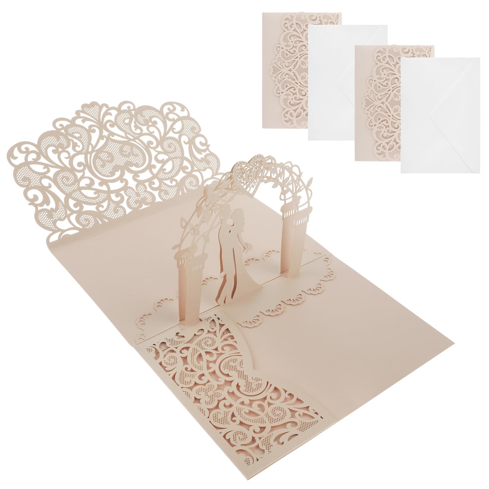 Amabro 3D Pop-Up Wedding Card, 2PCS Wedding Envelope Greeting Card Wedding Congratulations Gift Card for Bride and Groom Newlyweds Couple Valentine Anniversary Engagement Christmas(Pink)
