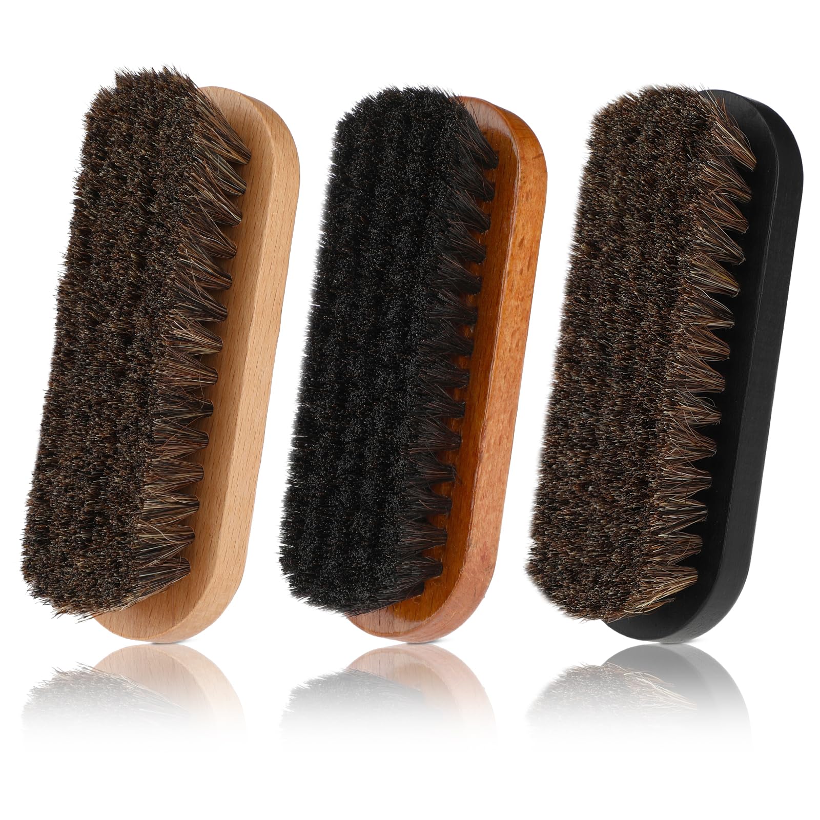 Amabro 3PCS Horsehair Shoe Brush, Shoe Polish Brushes Leather Shine Brush Suede Shoes Cleaning Brushes Wooden Handle for Boots Shoes Car Seats Sofas Bags Sneakers