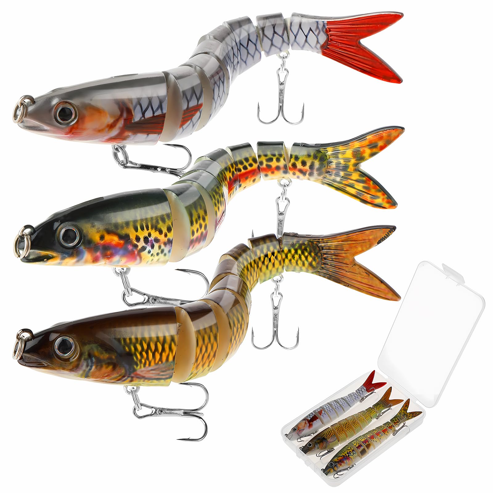 Amabro 3PCS Lifelike Fishing Lures, Multi-Jointed Swimbait for Bass Trout Crappie Walleye Slow Sinking Fish Lures with Storage Box for Freshwater Saltwater Topwater(Style-A)
