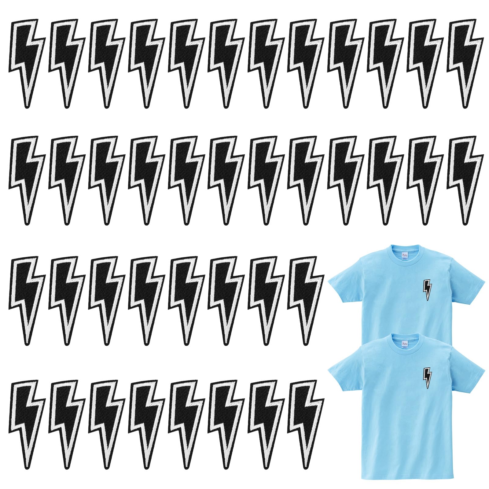 Amabro 40Pcs Black Lightning Iron on Patch, Embroidered Patches Lightning Bolt Fabric Patches, Sew on Flash Appliques Embroidered for DIY Clothes Trucker Hat Jeans Shoes Backpack Decor