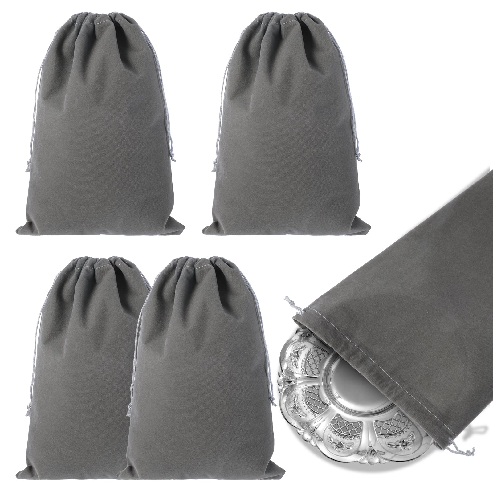 Amabro 4PCS Silver Storage Bags, 11.8" x 7.8" Anti Tarnish Cloth Bag Fabric Cloth Pouch for Protection Jewelry Flatware Silverplate Tarnish Cleaning (Grey)