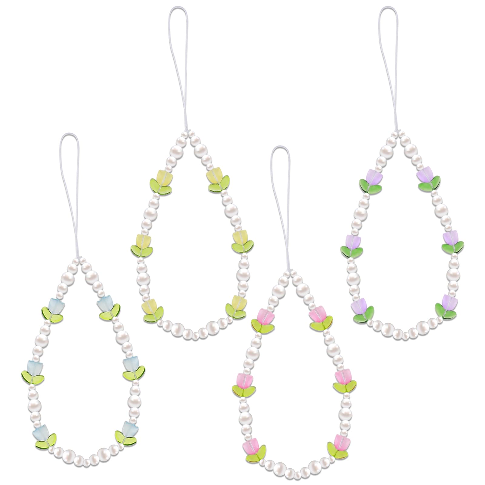 Amabro 4PCS Tulip Flower Mobile Phone Pendant Phone Charms Strap Cute Phone Lanyard Beaded Phone Chain Strap for Keychain, Backpack, Wallet Decoration