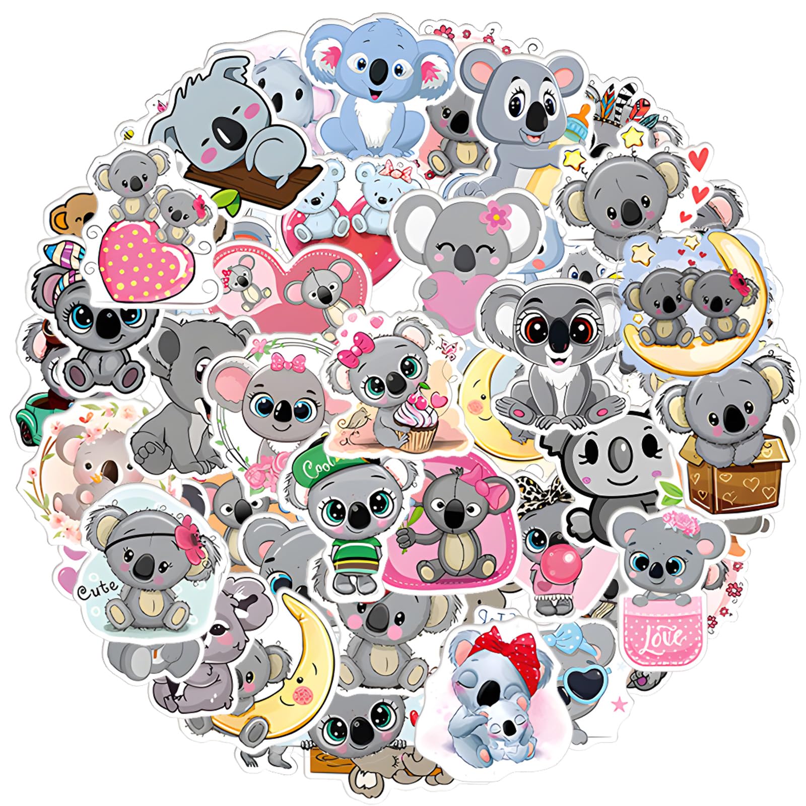 Amabro 50Pcs Cute Koala Stickers, Waterproof Vinyl Stickers Cartoon Animal Decal Sticker for Hydroflask Laptop Skateboard Luggage Bicycle Kids Teens