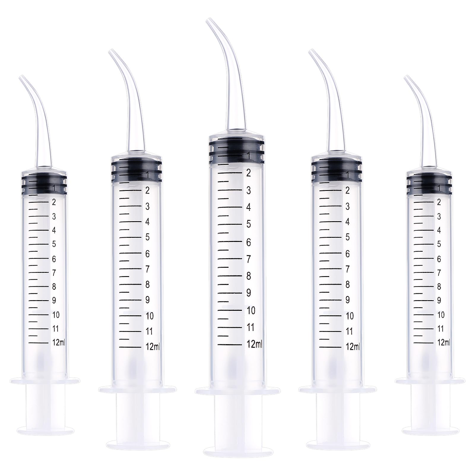 Amabro 5Pcs Dental Syringes, 12ml Oral Irrigation Syringe with Curved Tip Medicine Syringes Plastic Liquid Graduated Syringe Feeding Adapter for Oral Dental Care Teeth Cleaning