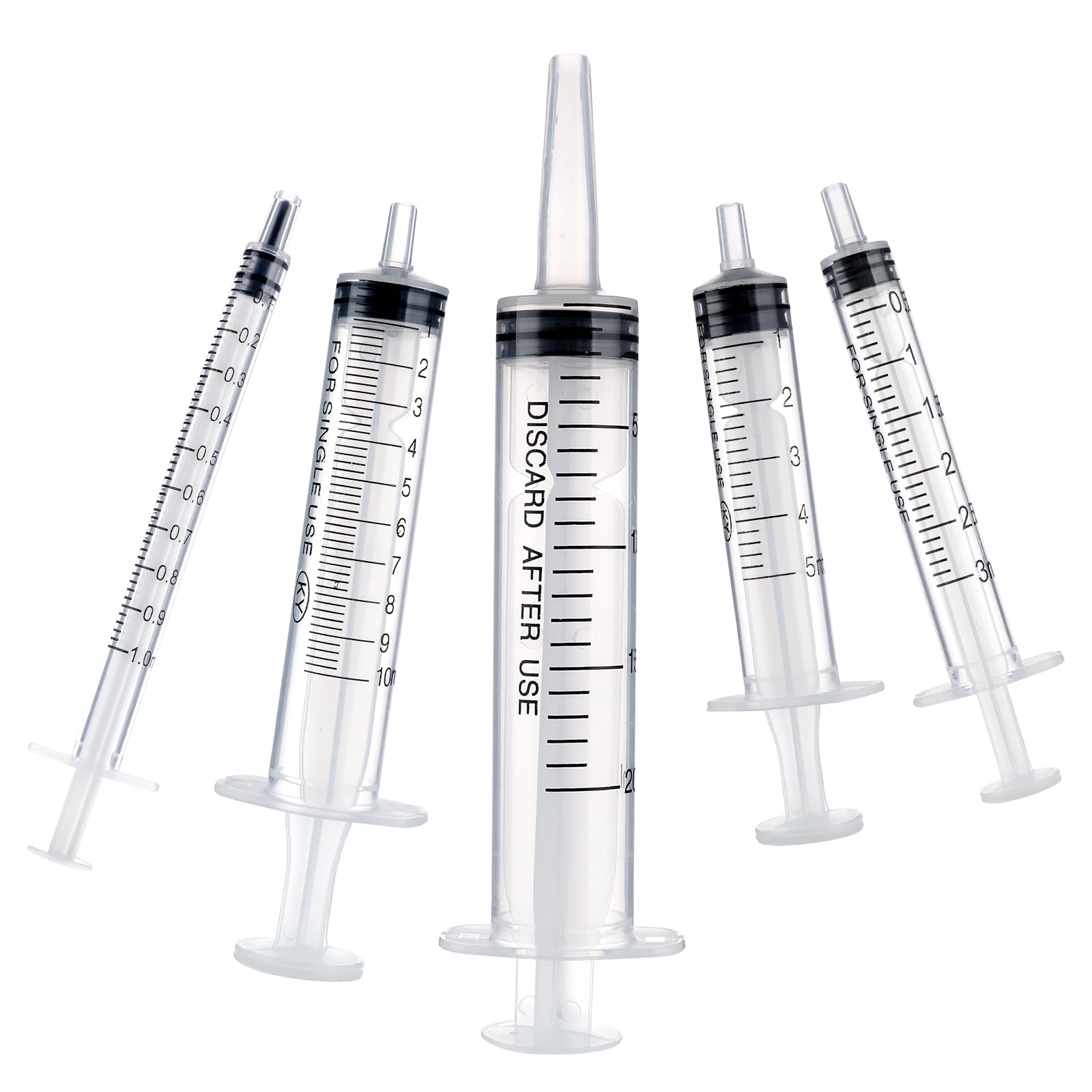 Amabro 5pcs Plastic Syringes - 1ml, 3ml, 5ml, 10ml, 20ml, No Needle Measuring Syringe Reusable Syringes for Scientific Lab Dispensing Liquid Measuring Watering Pet Feeding Oil or Glue Applicator
