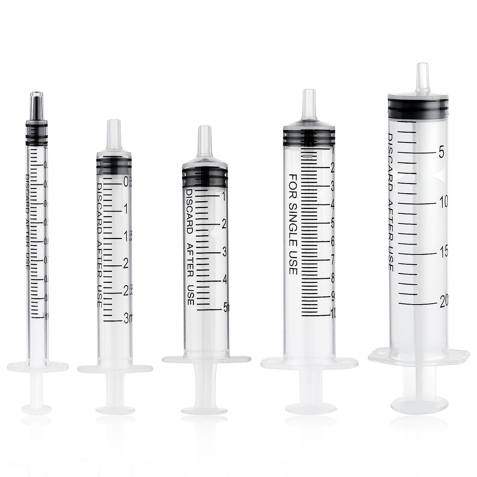 Amabro 5Pcs Syringe Set, 1ml 3ml 5ml 10ml 20ml Plastic Liquid Syringes with Measurement for Labs Pet Feeding Dispensing Watering Food Oral Press-In Adapter No Needle