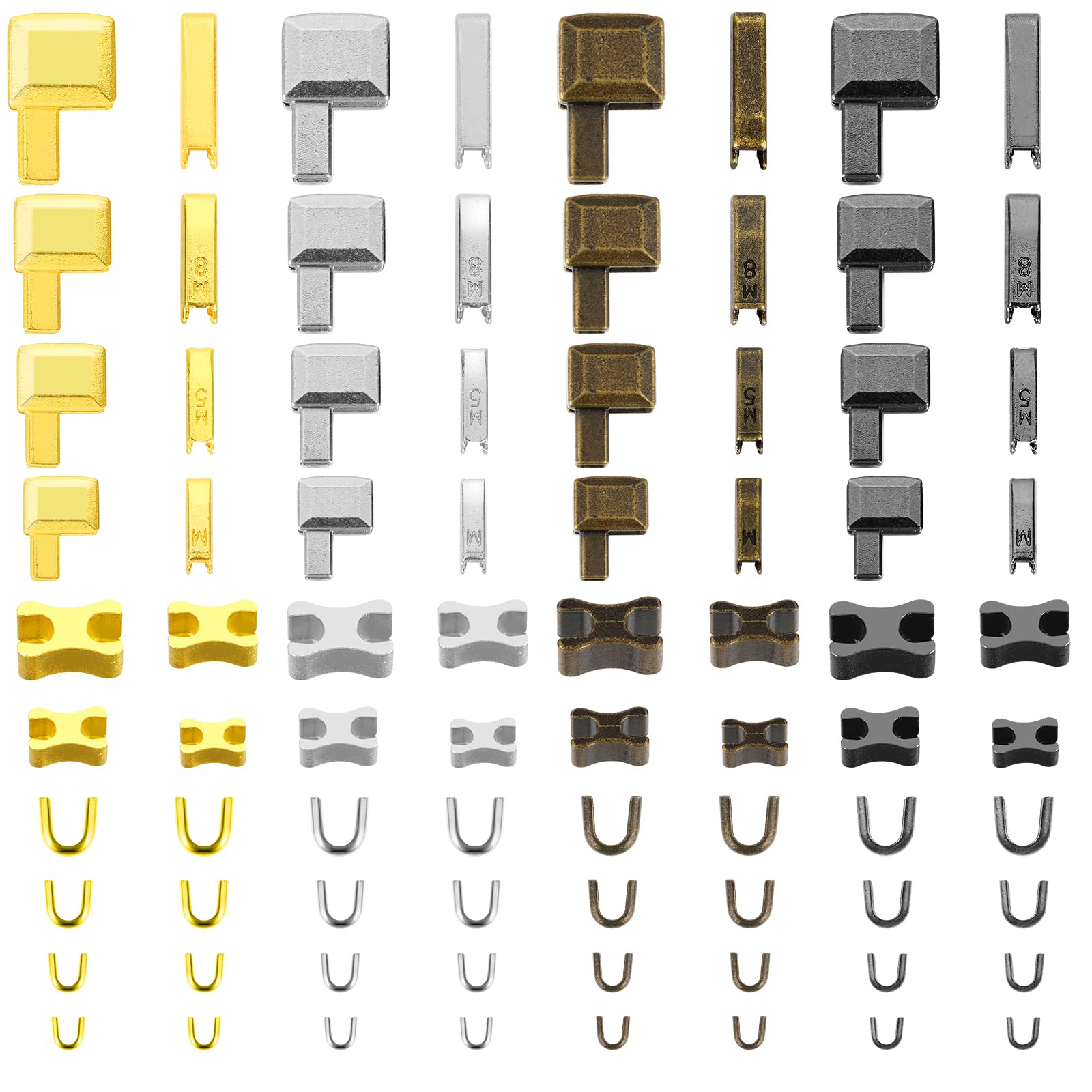 Amabro 80 PCS Metal Zipper Latch Slider Retainer, 4 Color #3#5#8#10 Insertion Pin Zipper Top Stop Plug Repair Bottom Zipper Stopper for Metal Zipper Repair Zip Jackets Coats DIY Sewing Replacement