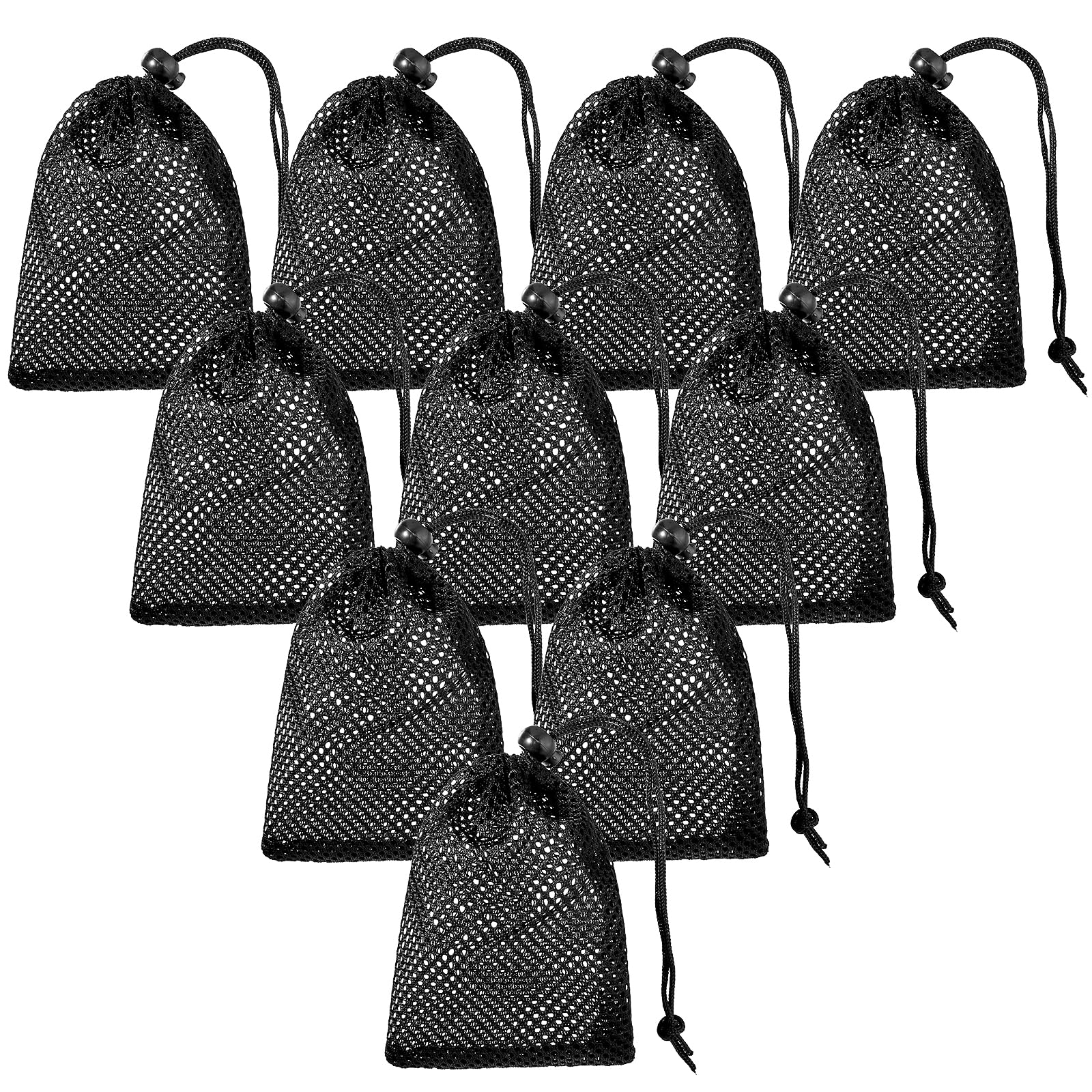 TIESOME 10 Pcs Thicken Nylon Mesh Drawstring Bag, Black Mesh Drawstring Bag Travel Stuff Bags Mesh Stuff Sack Mesh Drawstring Laundry Bag for Washing Beach Toys Seashell Collecting (10, 5.9x3.99in)