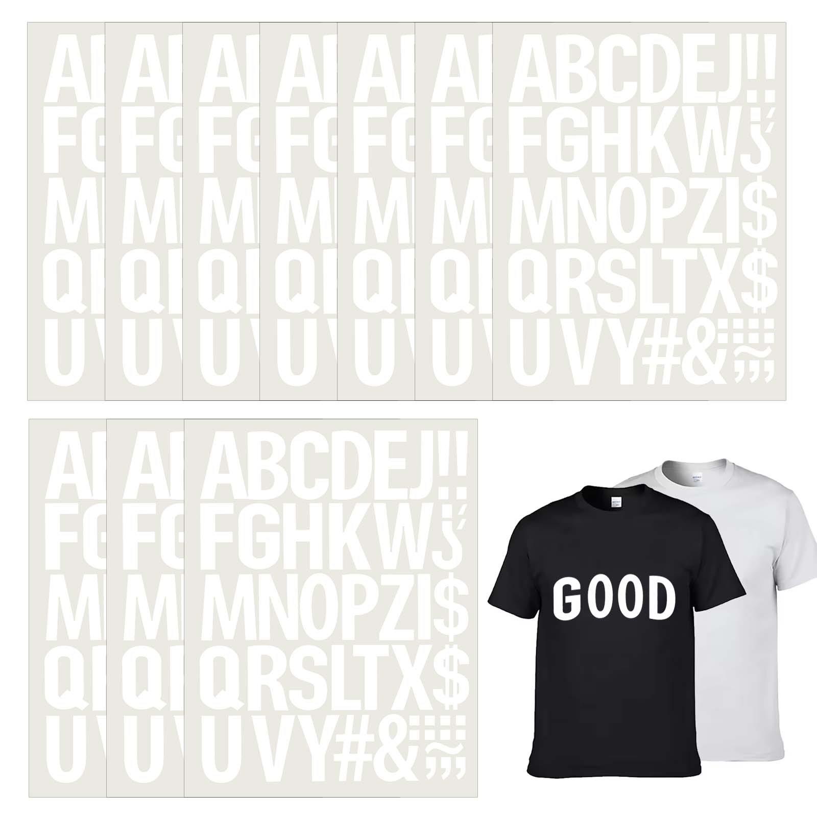 TIESOME 10 Sheets 440 Pieces Iron on Letters 2 Inch Heat Transfer Vinyl Fabric Letters with A-Z White PET Alphabets Sticker Heat Press Letters for T-Shirts Jerseys Hats Printing DIY Crafts