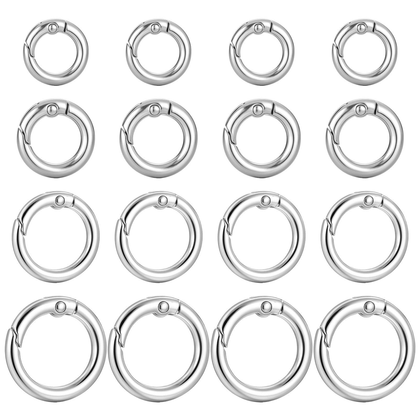 TIESOME 16 PCS Metal Spring Round Carabiner, 4 Sizes O Ring Keychain Clip Silver Round Carabiner Clip Snap DIY Accessories Spring Ring for Keychains Purse Bag Handbag(0.6/0.7/0.8/1 Inch)