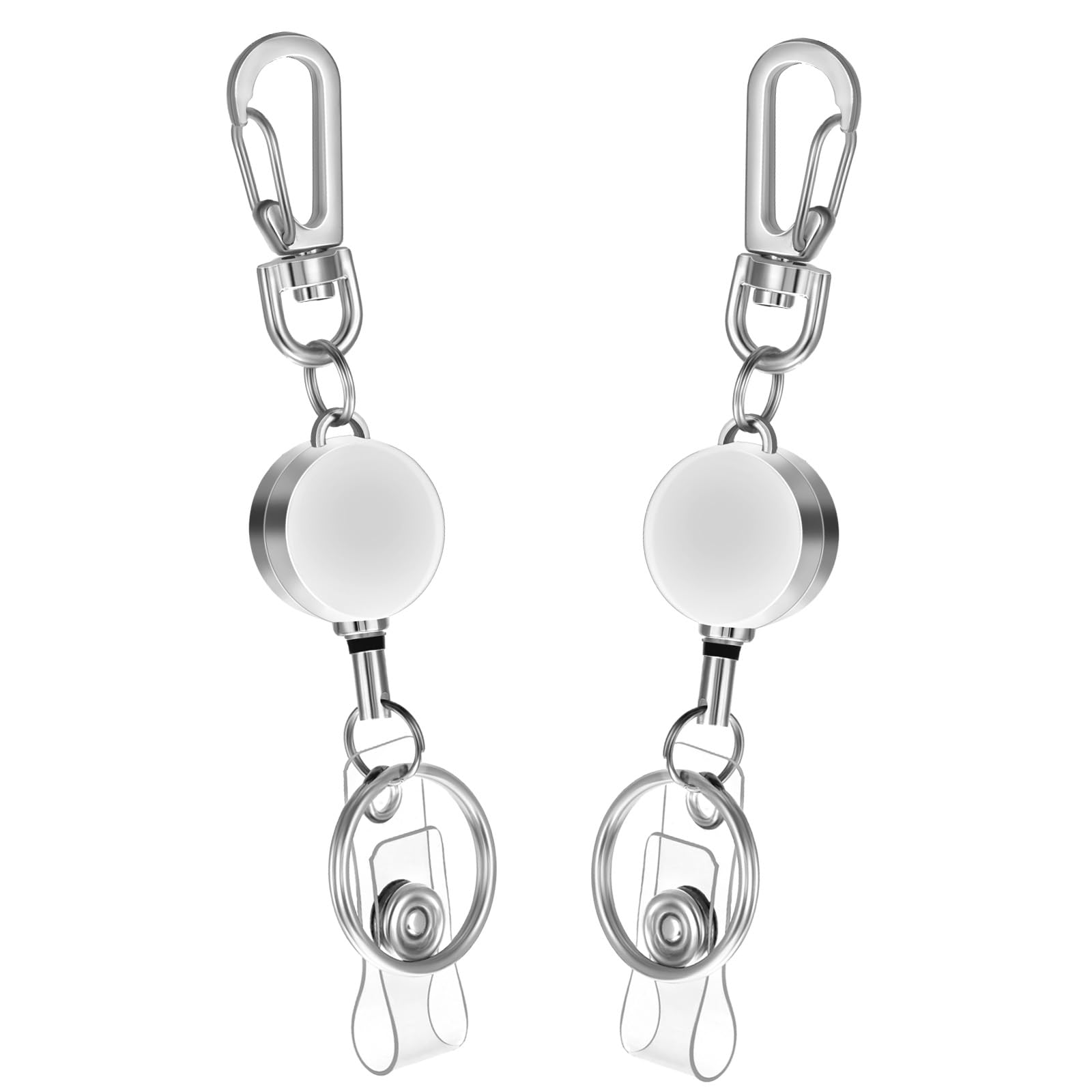 TIESOME 2 Pack Metal Retractable Badge Holder, ID Badge Holder with Reel Clip and Carabiner Key Chain Durable Keychain with Tenacity Retractable Cord for Teachers Students Office Workers(Silver)