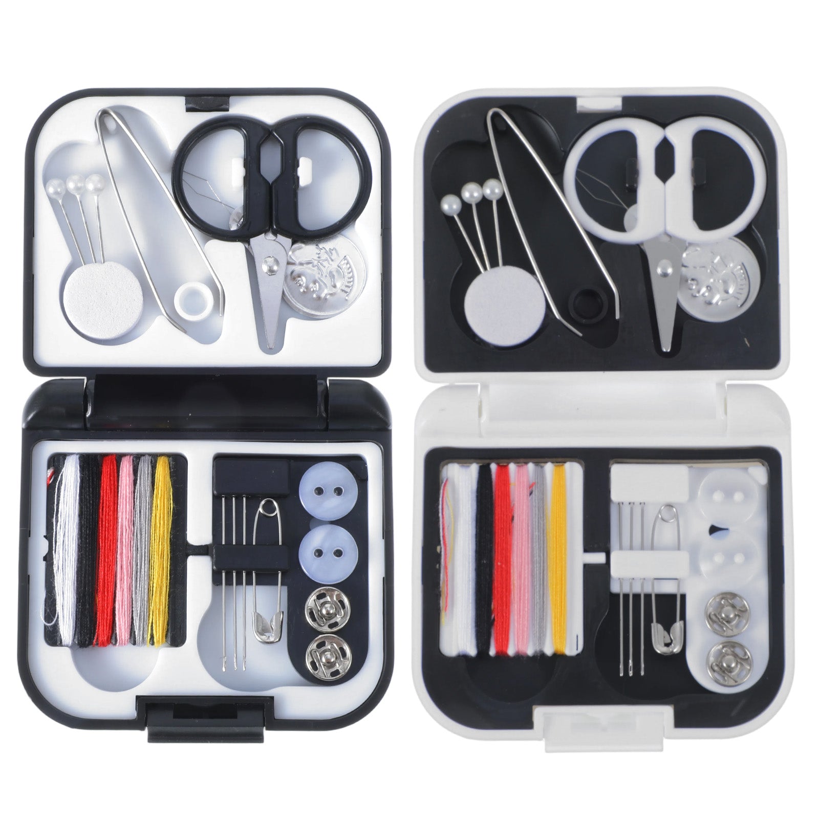 TIESOME 2 Pcs Mini Sewing Kit, Portable Travel Sewing Supplies with Needles Threads Scissors Buttons for Home and Emergency Repairs, Black and White