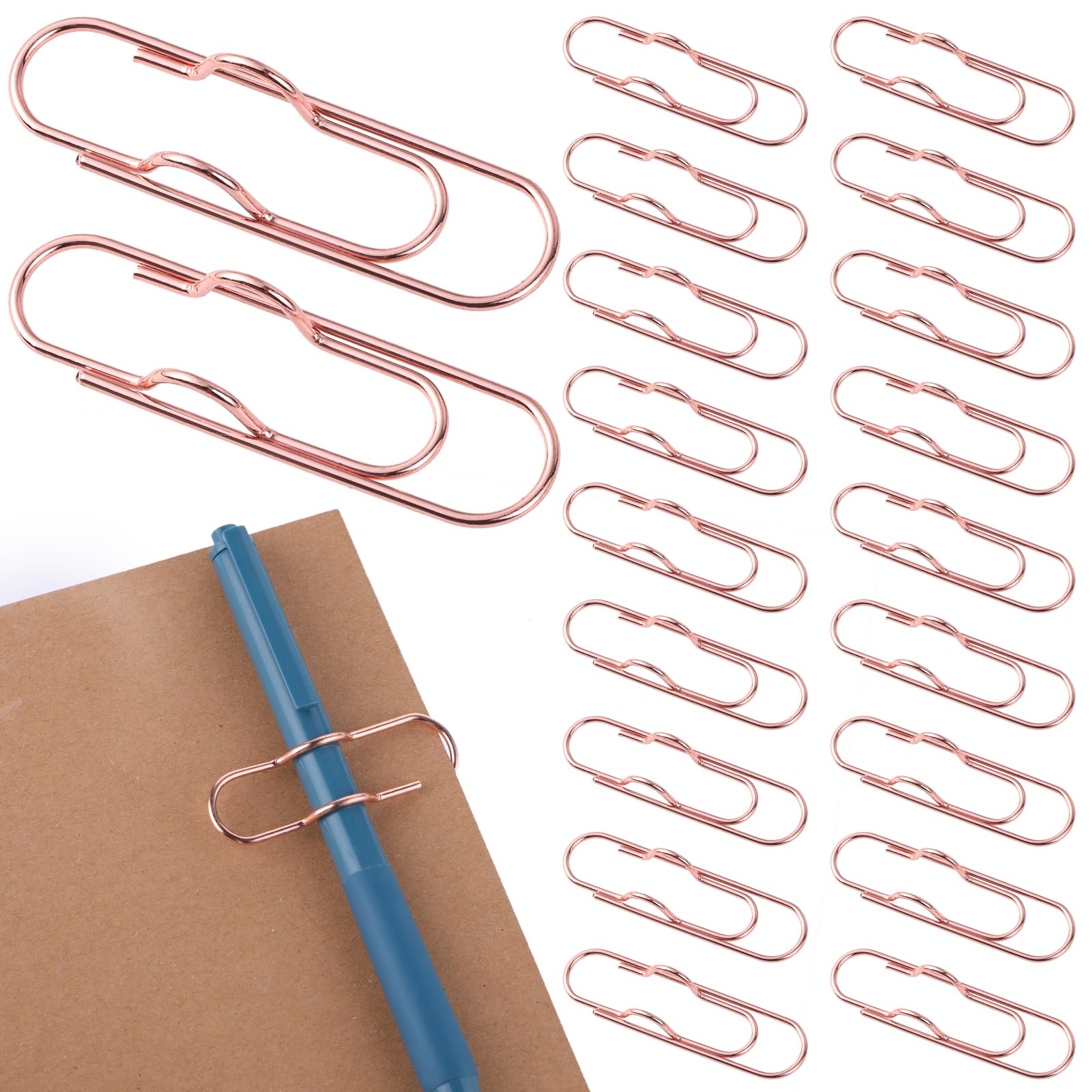 TIESOME 20 Pcs Multifunctional Metal Pen Clips, Pen Paperclip Pen Holders Portable Paper Clips Pen Clip Holder Office School Stationary Supplies for Notebook Books Journals Clipboard Paper(Rose Gold)