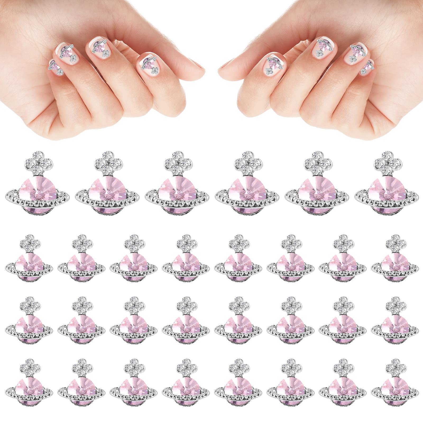 TIESOME 20Pcs Planet Nail Charms, 3D Nail Rhinestones Nail Art Zircon Alloy Manicure Jewelry Cute Glitter Nail Accessories for Women Girls Nail Decorations (Pink)