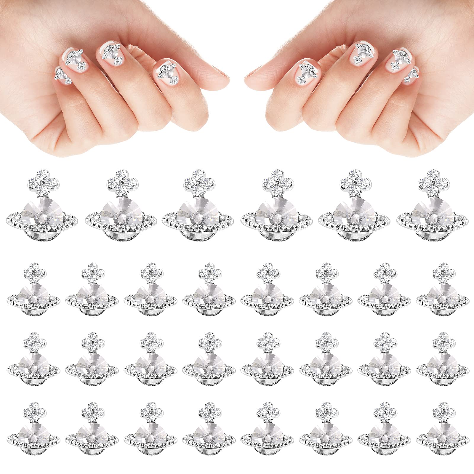 TIESOME 20Pcs Planet Nail Charms, 3D Nail Rhinestones Nail Art Zircon Alloy Manicure Jewelry Cute Glitter Nail Accessories for Women Girls Nail Decorations (White)