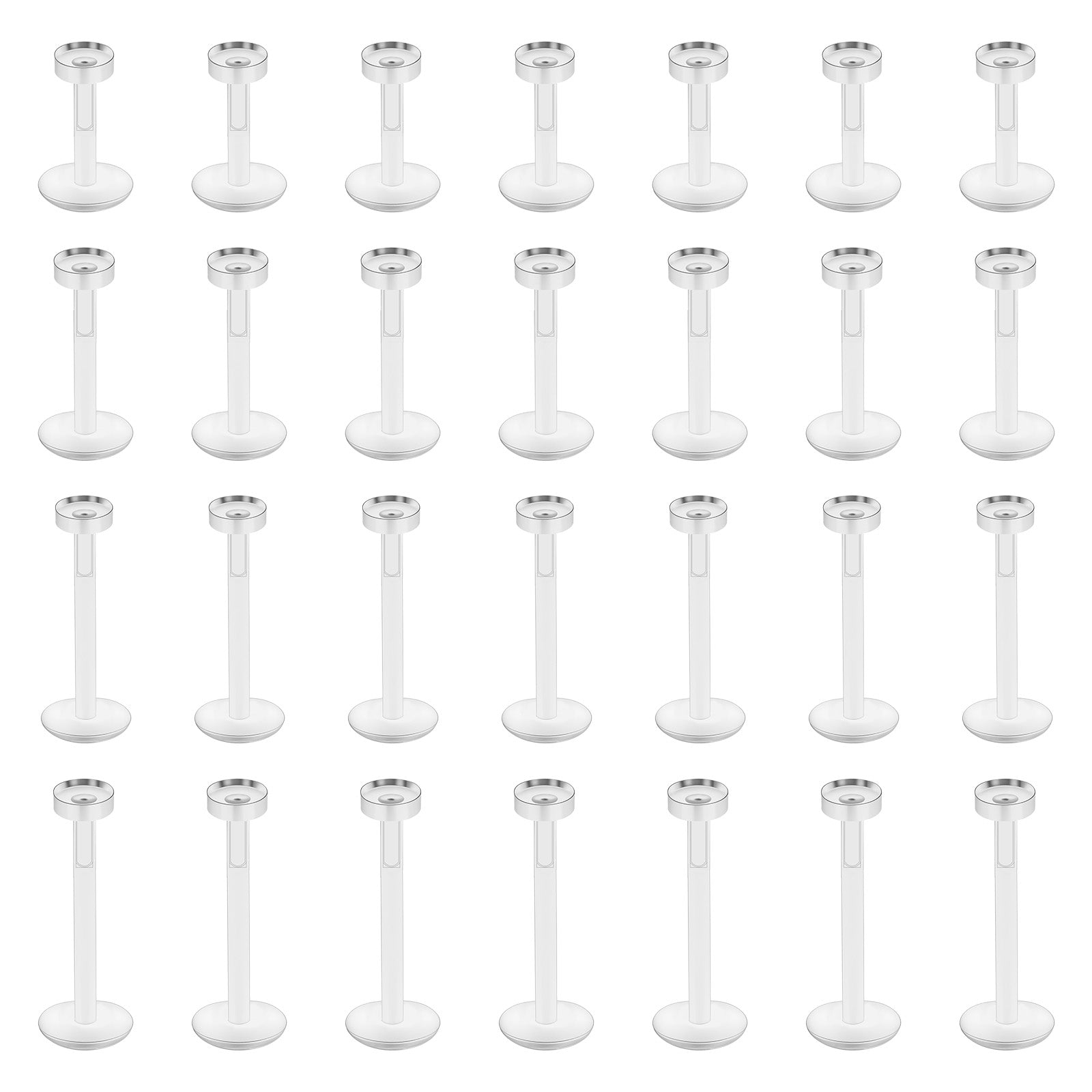 TIESOME 28 PCS Clear Piercing Retainers, 4 Sizes Clear Earrings for Sports Work Surgery Acrylic Push Top Piercing Retainers Flat Back Plastic Stud Earrings for Women Men