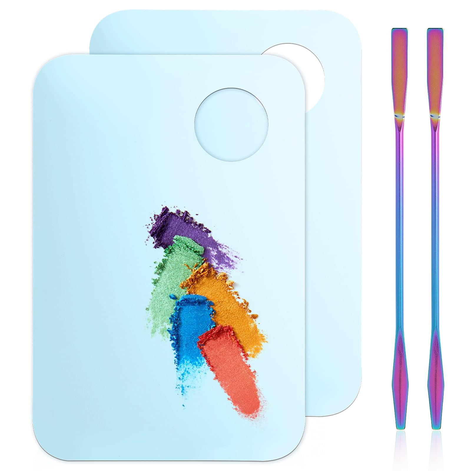 TIESOME 2pcs Acrylic Makeup Palette with 2 Palette Stick, Professional Cosmetic Mixing Makeup Palette Makeup Artist Tool for Mixing Foundation Eye Shadow Eyelash Nail Art(Gradient)